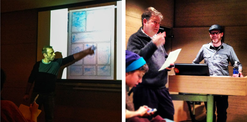 The New York Comics & Picture-Story Symposium is a weekly forum for discussing the tradition and future of text/image work. Open to the public, it meets Monday nights at 7-9pm EST in New York City. Presentations vary weekly and include everything from historical topics and technical demonstrations to creators presenting their work. Check out upcoming meetings here.