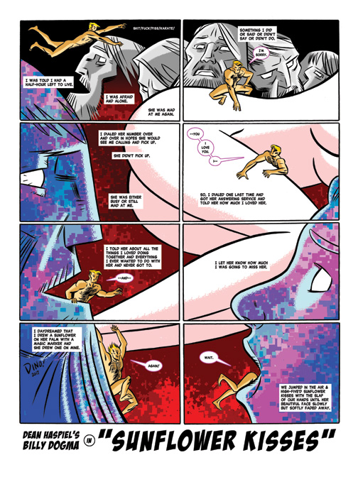 Our table will have for sale: Dean Haspiel’s PSYCHOTRONIC COMIX, and the new Billy Dogma poster SUNFLOWER KISSES, Gregory Benton’s B+F, and FORCE OF NATURE, and Christa Cassano’s THE GIANT EFFECT, plus other goodies.