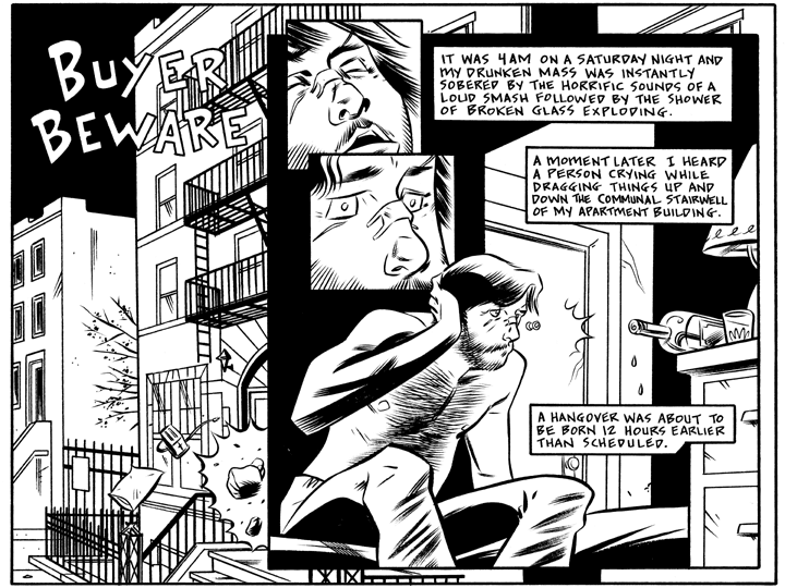 There was another night where I was drunk, walking home in Alphabet City, when a car almost ran over me as I dove across the street within inches of being crushed. That night, a man jumped to his death from a rooftop and landed in the very spot I dodged death. Other crazy stuff happened, and it became the basis for a screenplay I wrote about a spectre of death called “Die! Die, Again!!” I’ve written four or five different screenplays since, and half of one was produced last year into a play called “Switch To Kill,” wonderfully directed by Ian W. Hill. One of these days I aim to either illustrate my unproduced screenplays or publish them as a collection.”