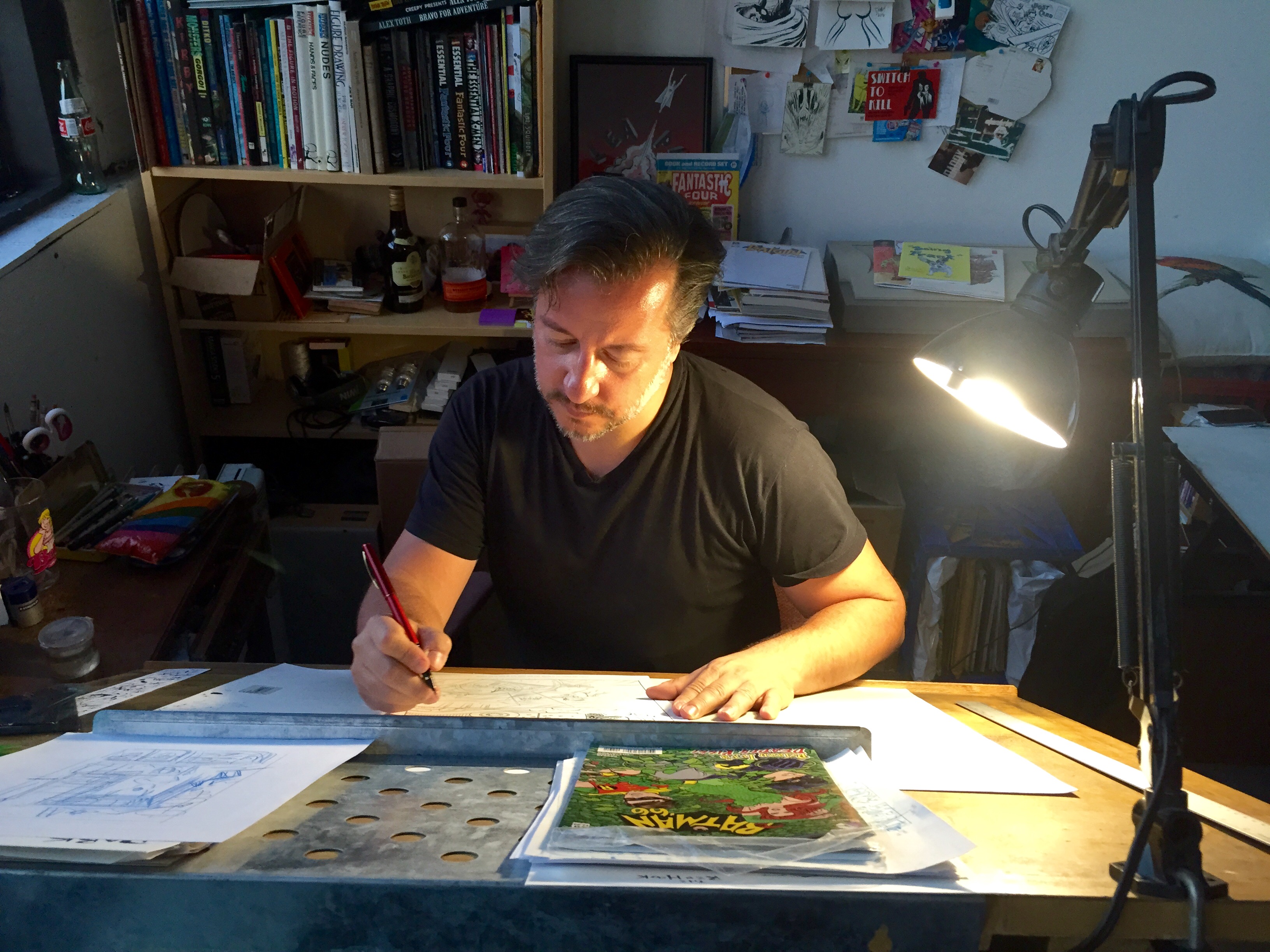 (Dean Haspiel at Hang Dai Studios in Gowanus, Brooklyn, Sept. 16th, 2015. Photograph by Matthew Ballen)