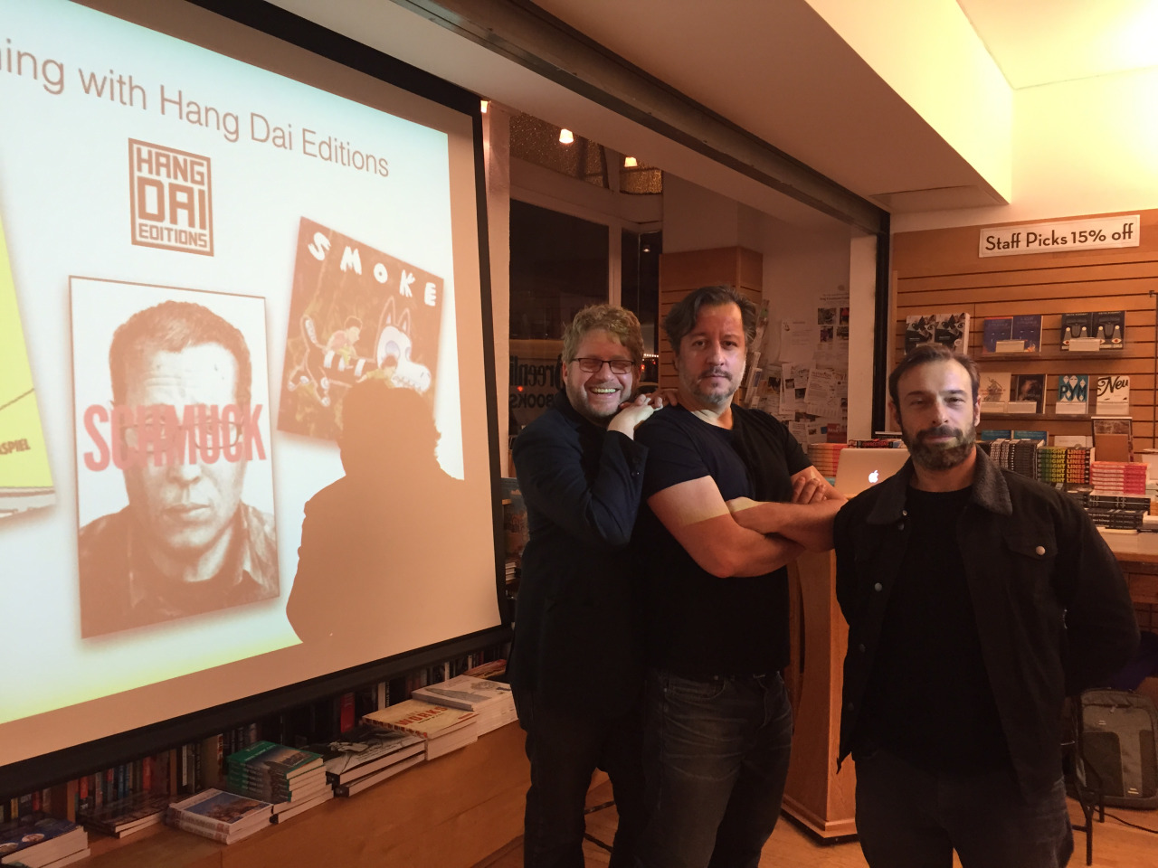 (Josh Neufeld, Dean Haspiel & Gregory Benton at Greenlight Bookstore)